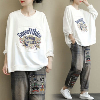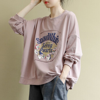 卫衣女宽松韩版学生文艺长袖秋冬季加绒休闲印花圆领套头上衣外套 粉紫色 XL110-125斤 |