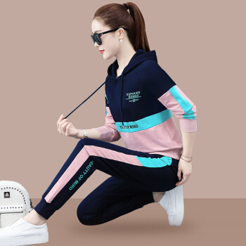 昕柒叭连帽卫衣运动套装女潮流休闲运动服宽松韩版两件套 宝蓝色 L(建议98~110斤)出监用夏服 |