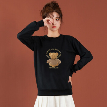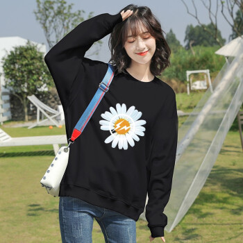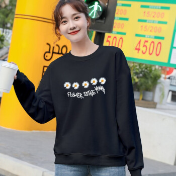 萌朵丽啦新款卫衣女宽松秋冬学生长袖圆领外套班服定制 MT3264黑色 M(建议90斤-110斤) |