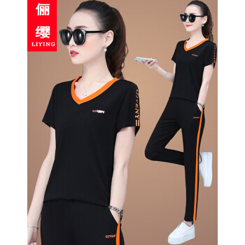 俪缨运动套装女卫衣女新款春夏学生胖MM韩版宽松显瘦上衣长裤跑步服减龄休闲套装两件套大码女装潮 黑色 此码勿拍,请拍自身对应码数 |