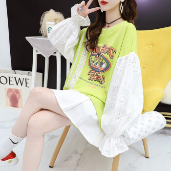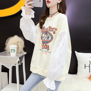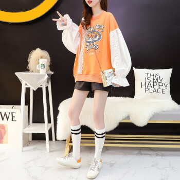 小赖猴蕾丝拼接卫衣女长袖薄外套早秋新款韩版宽松慵懒风上衣 橘色 均码 |