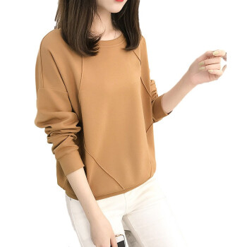 佰可衣新款圆领卫衣女春秋韩版宽松套头打底上衣女潮流 A字母驼色 M |