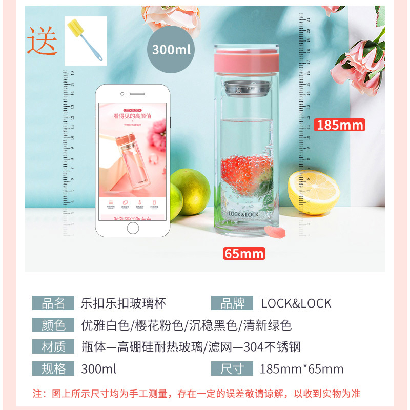 便携耐热防烫玻璃水杯300ml 送杯刷【玻璃/颜色自选】 |