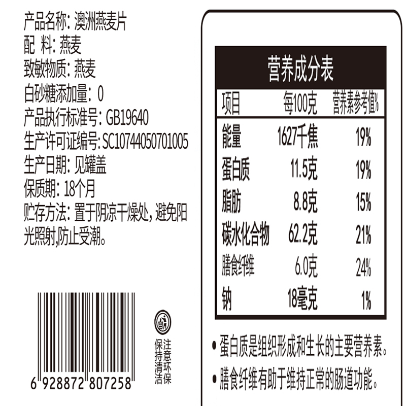 快熟纯燕麦片 |