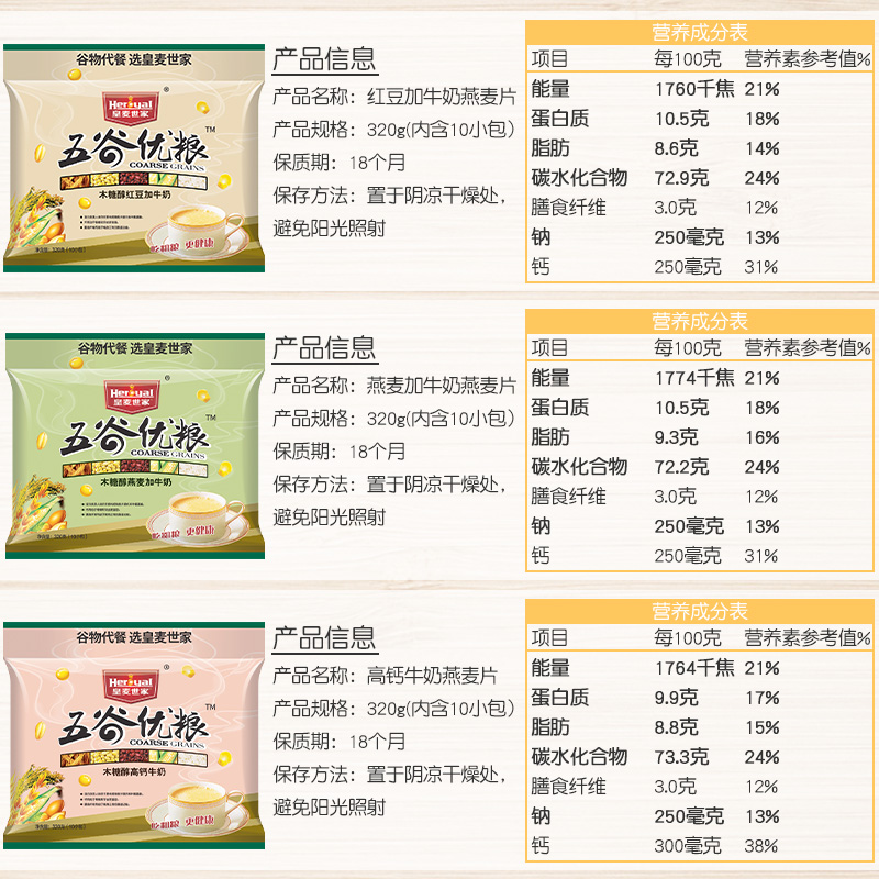 木糖醇红豆&燕麦&高钙加牛奶燕麦片组合 |