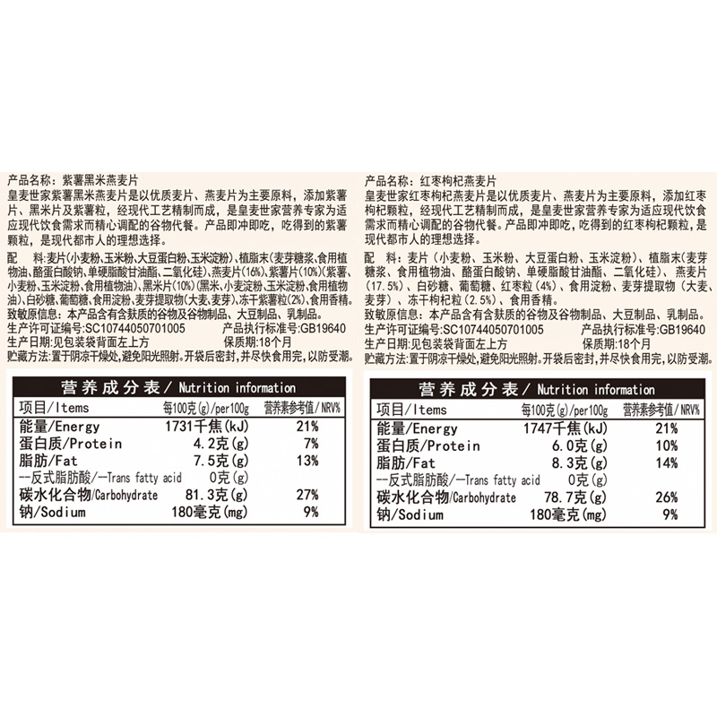 红枣枸杞&紫薯黑米燕麦片组合装 |