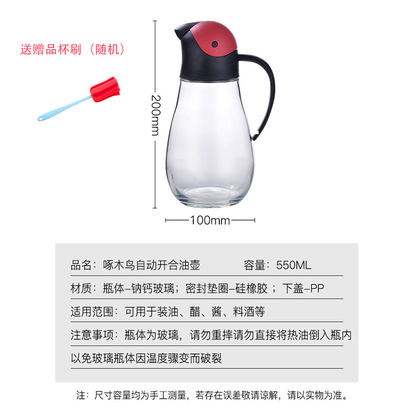 厨房油瓶自动开合玻璃防漏油壶-买就送杯刷【玻璃/颜色自选】 |