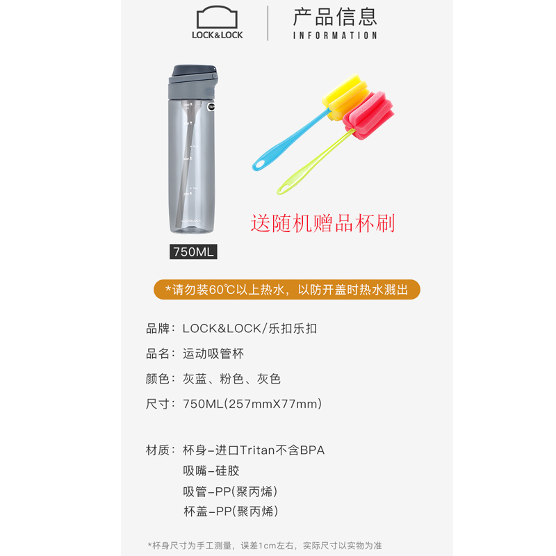 一键式弹跳大容量运动便携吸管水杯750ml 买就送杯刷【塑料/颜色自选】 |