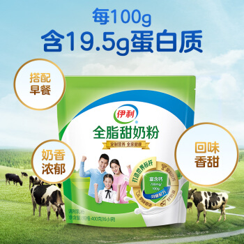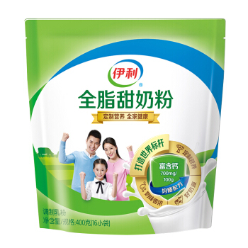 伊利全脂甜奶粉 奶粉 营养 维生素B2 早餐 冲饮 400g袋装 方便装 独立小包装 |