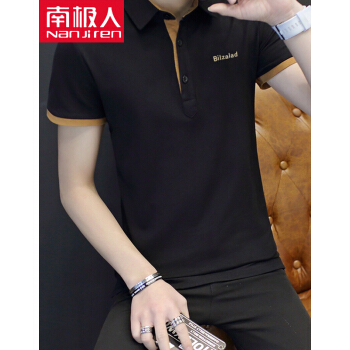南极人短袖T恤男夏装新品半袖翻领纯色男士POLO衫男装打底衫 黑色 XL |