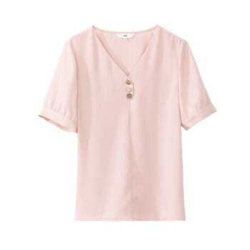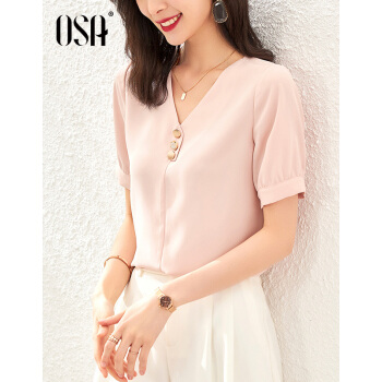 OSA欧莎气质短袖雪纺衫女遮肚子新款夏季欧洲站洋气小衫时尚上衣 粉色 S |