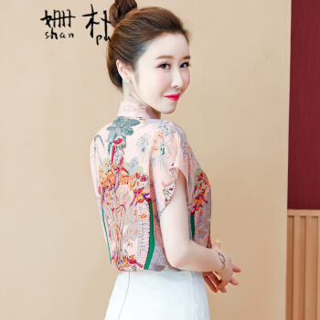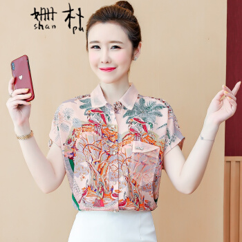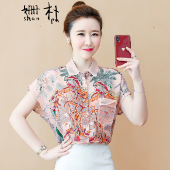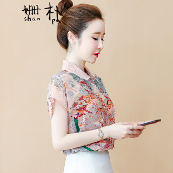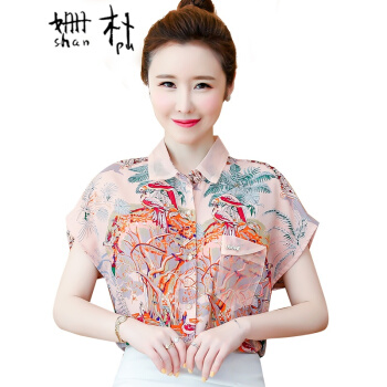 姗朴 雪纺衫女韩版夏季新款大码女装洋气碎花上衣宽松显瘦设计感小众时尚潮上衣休闲百搭小衫女衬衫 粉色 L |