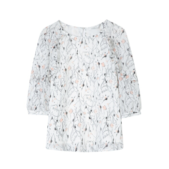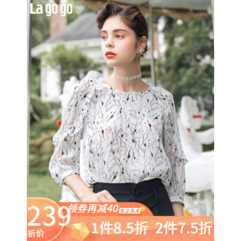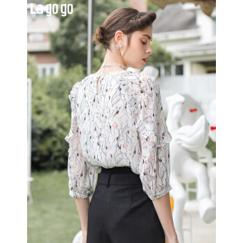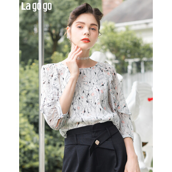 Lagogo拉谷谷夏季新款圆领印花甜美七分袖修身套头上衣雪纺衫女JASS406C27 混色(Y0) 165/L/40 |