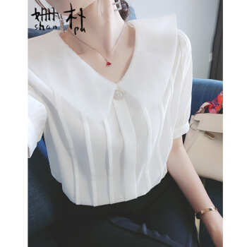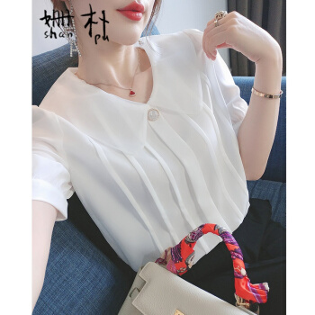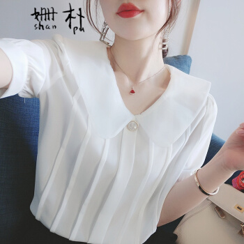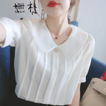 姗朴 雪纺衫女短袖娃娃领衬衫女韩版夏季新款女装仙气淑女百搭上衣洋气小衫超仙白色休闲时尚衬衫女 白色 L |