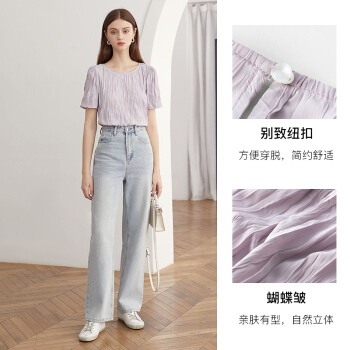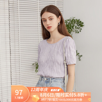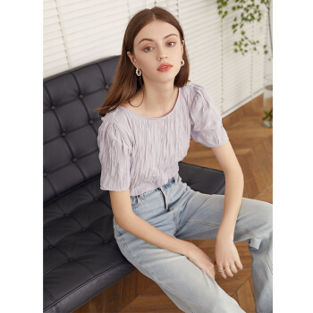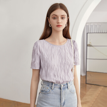 范思蓝恩 夏季新款紫色褶皱雪纺衫女百搭小众设计感温柔风上衣 淡紫雾色 M |