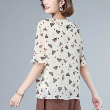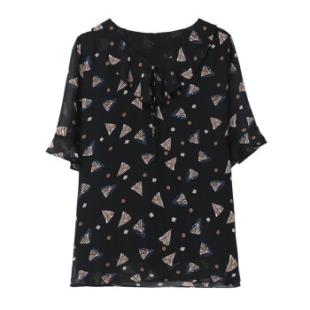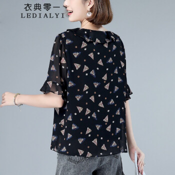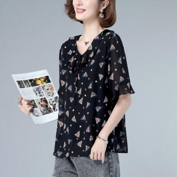 衣典零一 夏装新款夏季女装雪纺衫女时尚百搭韩版休闲宽松女士妈妈装印花短袖T恤衫女上衣衫衣小衫 黑色 XL |