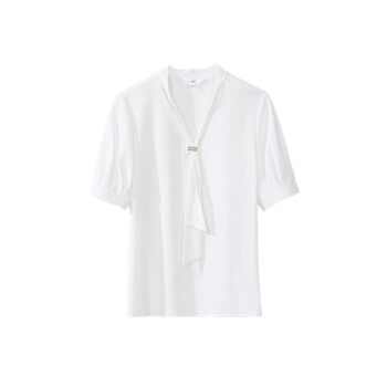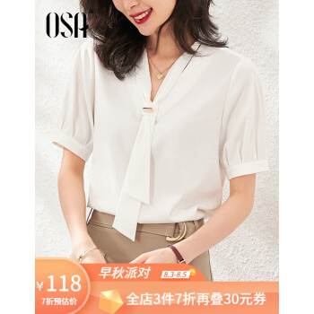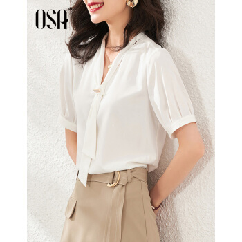 OSA欧莎白色雪纺衫女时尚夏装新款v领洋气小衫时尚遮肚子短袖上衣 白色 S |