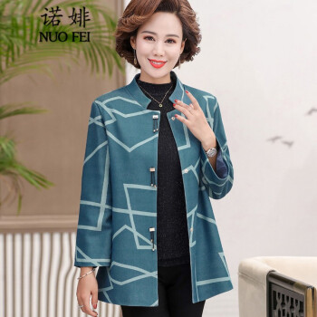 诺婔新款中年妈妈装春秋装洋气外套高贵上衣中老年女装春装气质大码休闲薄风衣短奶奶大码衣服夹克40岁60 湖蓝色 XL 建议90-115斤 |
