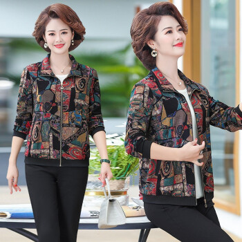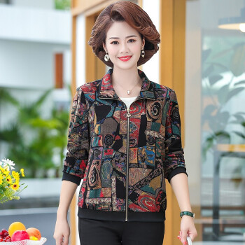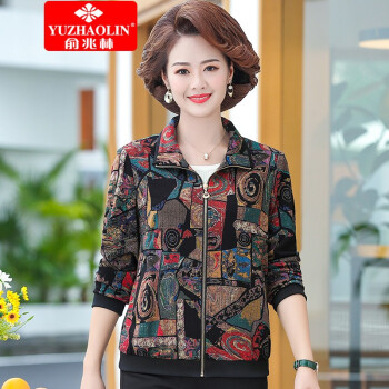 俞兆林中老年人女装妈妈装秋冬装拉链翻领印花外套衣服女LY2110 花色 请下单正确颜色尺码 |