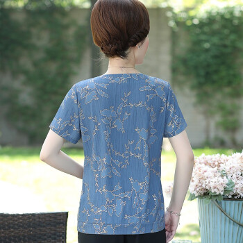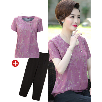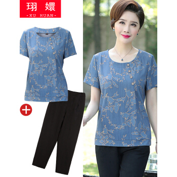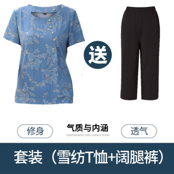 珝嬛中老年女装夏装新两件套4050岁中年妇女阔太太短袖t恤女上衣裤子大码妈妈装雪纺衫奶奶套装 蓝色 请拍自身对应码数 |