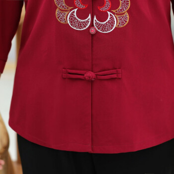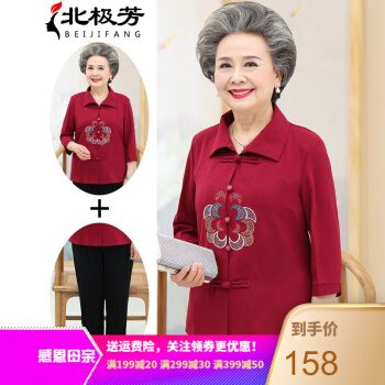 北极芳 中老年女装妈妈装奶奶装新款套装春夏装中长袖老年人休闲衬衫女60-80婆婆衬衣 037 红色套装 2XL【105-120斤】 |