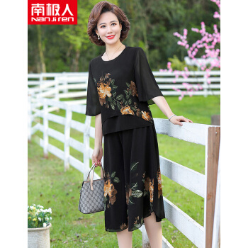 南极人 中老年女装夏季新款雪纺中年妈妈装七分袖碎花洋气减龄两件套 黄色花 3XL(建议120-135斤) |