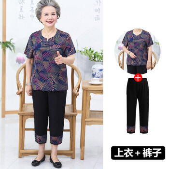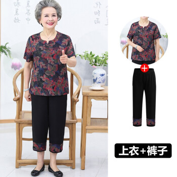 屹杨套装中老年女装妈妈装大码女装新款中老年人夏装女奶奶短袖套装60岁70妈妈T恤上衣老人衣服 1号色 (尺码勿拍,请拍自身对应尺码) |