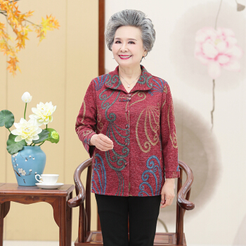 孜颜中老年女装秋装老年人妈妈装衬衫长袖上衣薄外套60-80岁奶奶装春秋季老人衣服 红色单件 3XL(建议110-125斤) |