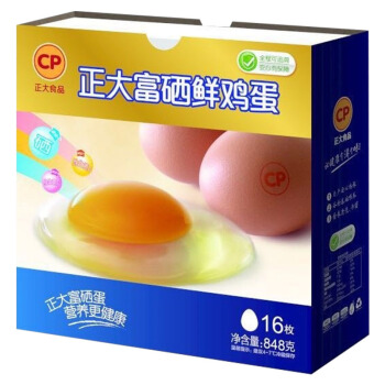 正大(CP) 富硒鲜鸡蛋 16枚 53~60g/枚 鸡蛋礼盒 早餐食材 |