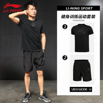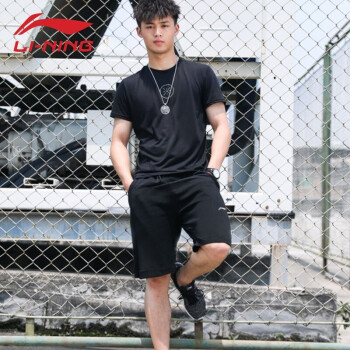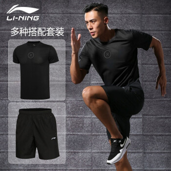 李宁运动套装男士速干短裤男夏季服饰健身服篮球服运动服饰跑步服衣服透气短袖 黑/黑(韦德) XL |