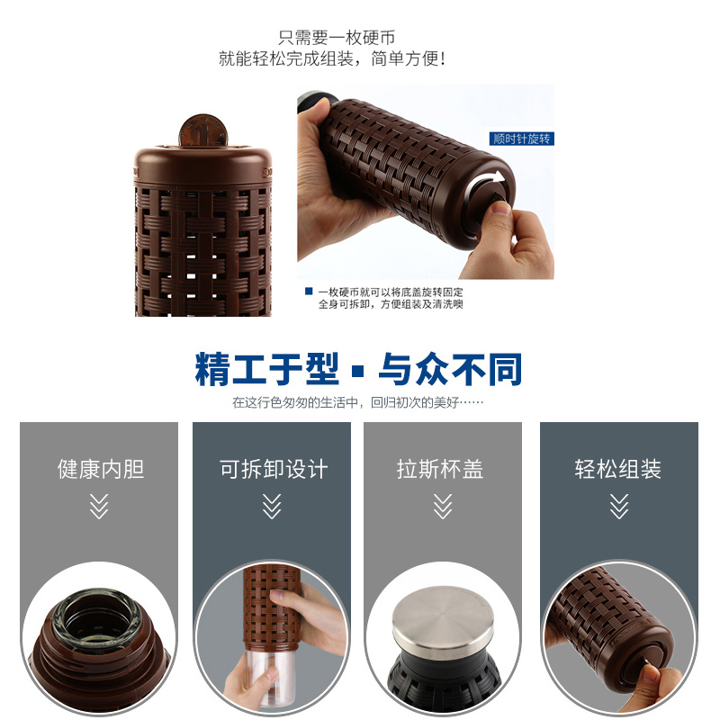 直筒型350ml复古编织塑玻杯耐热玻璃水杯【玻璃/颜色自选】 |