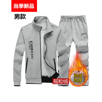 恒源祥恒源祥商场同款 时尚运动套装男士春秋情侣跑步服冬季中老年加绒卫衣休闲服女秋两件套 灰色男 加绒 S |