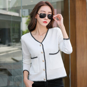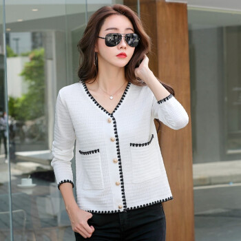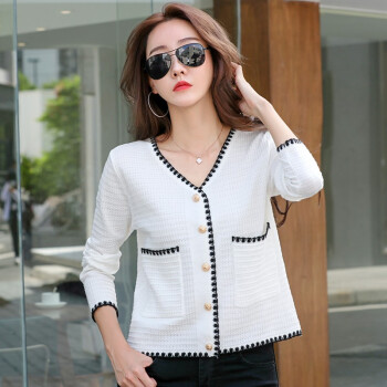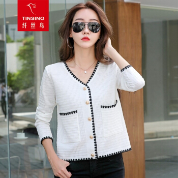 纤丝鸟 TINSINO 针织衫女秋季新品小香风撞色针织开衫宽松显瘦毛衣外套女 典雅白 请拍正确尺码 |