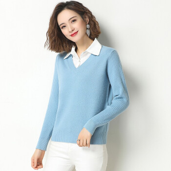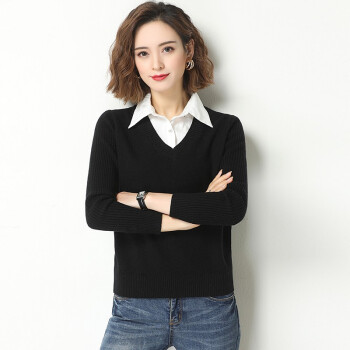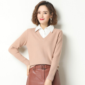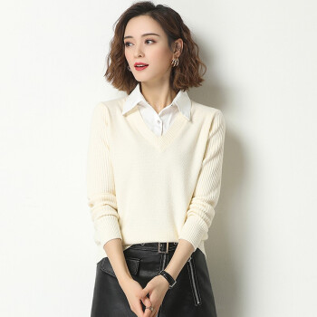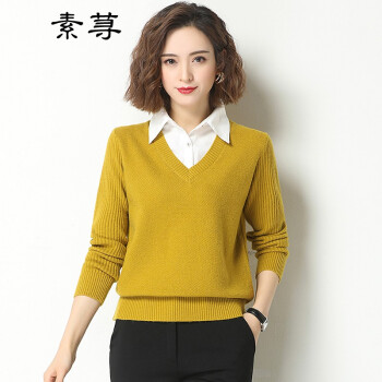 素荨针织衫女套头短款秋装新款衬衫领毛衣女宽松百搭春秋打底衫 黄色15102 M |