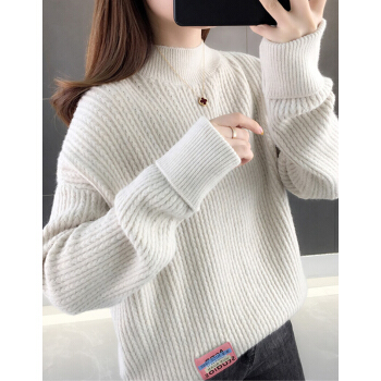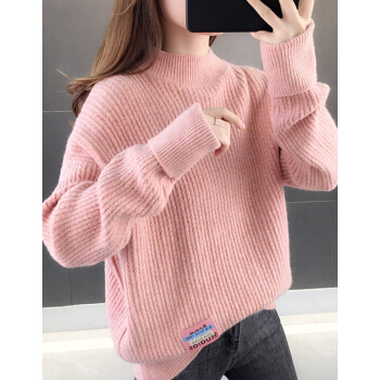 婪澈针织衫女春秋新款大码女装打底衫女韩版宽松百搭圆领毛衣女 黄色 L |
