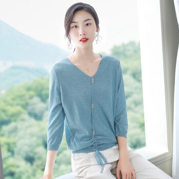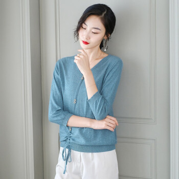 素荨针织衫女V领亮丝上衣秋装新款薄款毛衣宽松七分袖打底衫 砖红色1213 M |