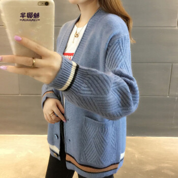 芈娜魅针织衫女开衫秋季新款女装简约慵懒修身长袖针织毛衣上衣女 图片色 请拍正确尺码 |