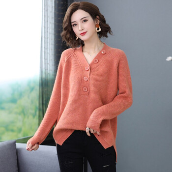 帕兰朵 针织衫女秋冬新款大码毛衣女宽松套头洋气V领针织打底衫百搭上衣外套 橘色 请拍正确尺码 |