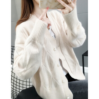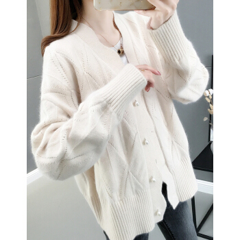 婪澈针织衫女秋季新款女装百搭春秋针织毛衣外套女开衫宽松外穿ins潮女士上衣 白色 L |