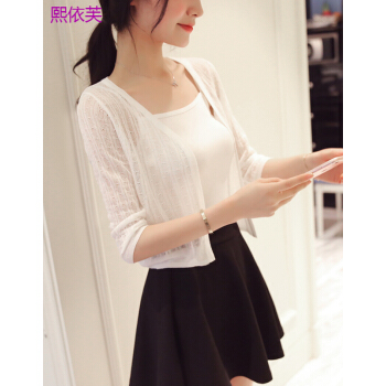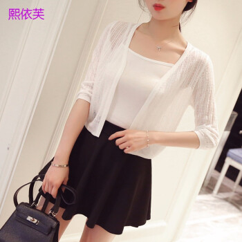 熙依芙针织衫女开衫夏季薄款吊带外搭开衫超仙短款针织衫女镂空冰丝小外套防晒衣披肩 白色 M |