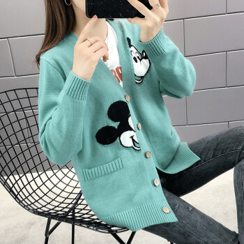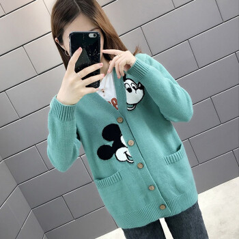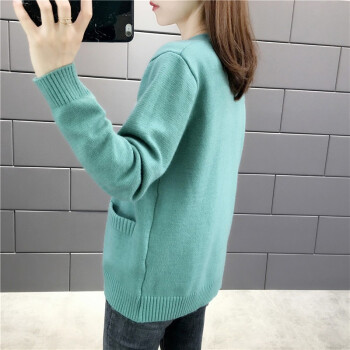 红蜻蜓 针织衫女新款秋冬季甜美气质韩版女装开衫V字领宽松型针织毛衣女外套 WL172 绿色 均码 |