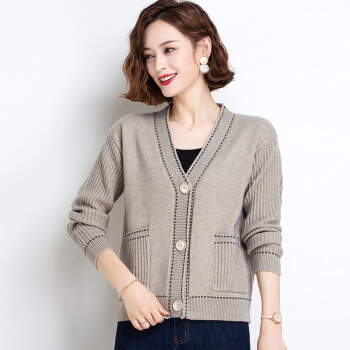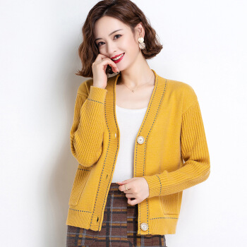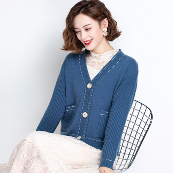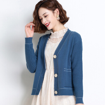 歌米拉 针织衫女开衫秋季新款毛衣女外套时尚韩版春秋女装长袖短款 蓝色 M |