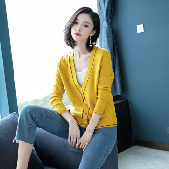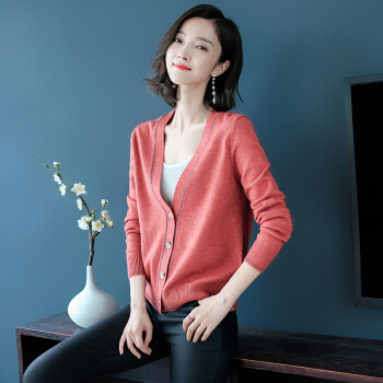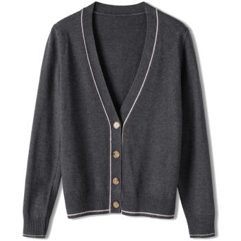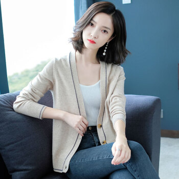 歌米拉 针织衫女开衫春秋短款上衣秋装新款洋气外搭薄款女士毛衣小外套 灰燕麦 M |