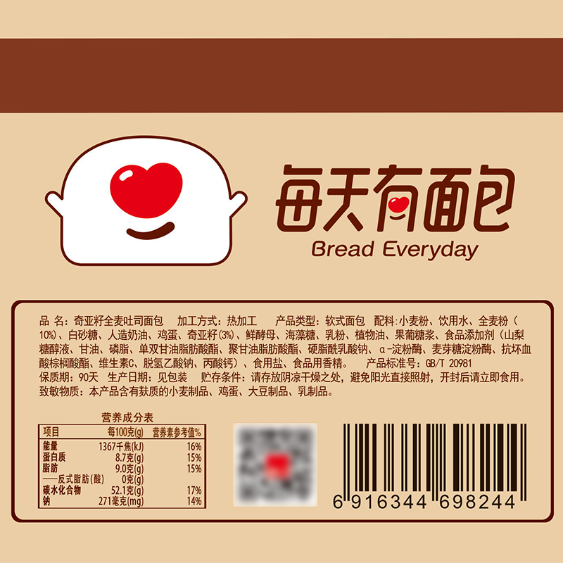 奇亚籽全麦切片吐司面包 |