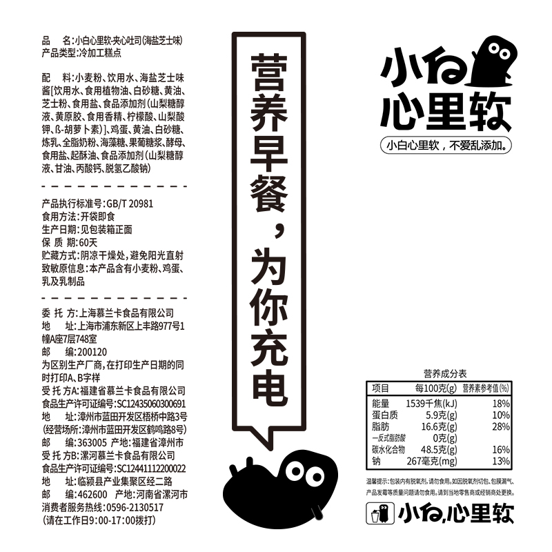 夹心吐司(海盐芝士味)+暖暖面包(原味)组合 |