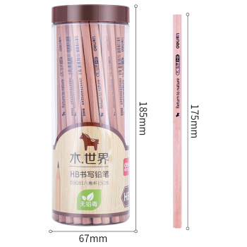 得力(deli)木世界系列六角笔杆原木HB铅笔素描绘图学生铅笔 50支/桶S908 |
