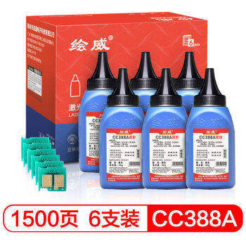 绘威CC388A 88A碳粉6支装 适用惠普HP P1007 P1106 P1108 M126a M128fp M1136 M1216nfh打印机硒鼓 墨粉 |