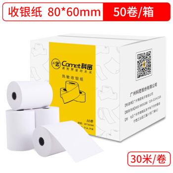 科密 热敏小票纸 80x60mm 美团外卖小票打印纸 超市餐饮收银机收银纸 30米/卷 50卷/箱 A8650 |