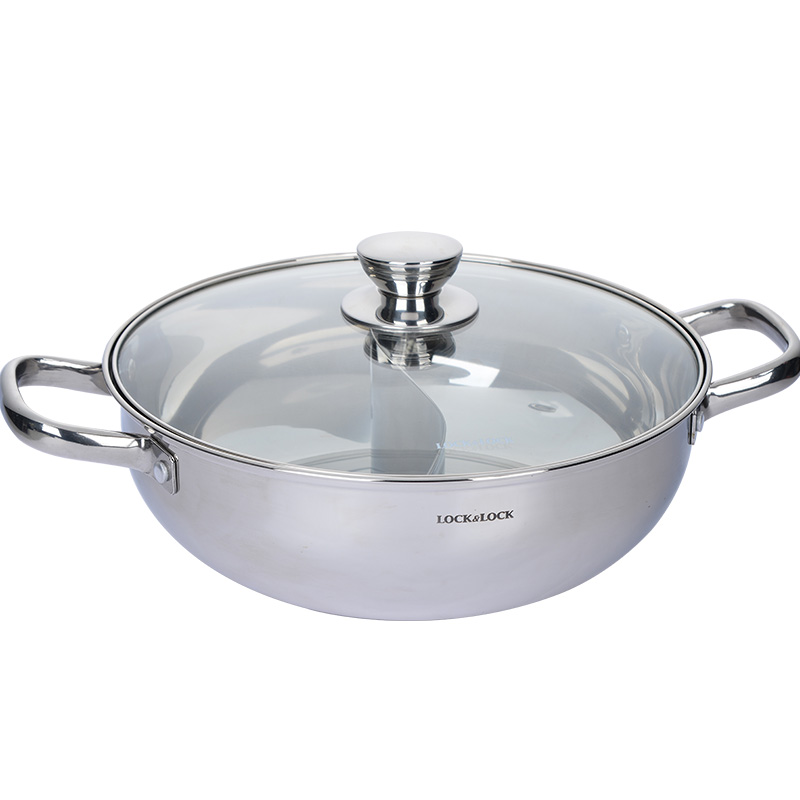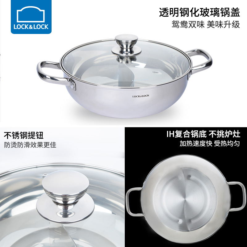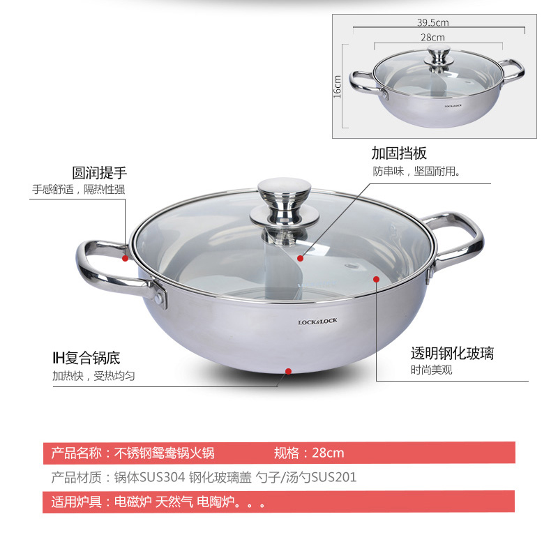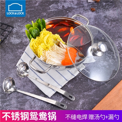 不锈钢加厚电磁炉燃气通用(配汤勺漏勺)鸳鸯火锅 28cm【不锈钢/不锈钢色】 |