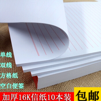 10本装16K空白方格作文纸单线双线原稿纸学生用加厚信纸便签 加厚单线10本450张 |
